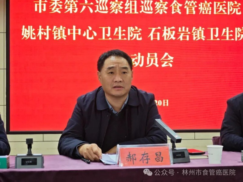 会上,市委第六巡察组组长郝存昌作了重要讲话,从三个方面进行了动员部署。被巡察单位林州市食管癌医院、林州市姚村镇中心卫生院院长王庆伟、林州市石板岩镇卫生院院长栗振凯分别作了表态发言。林州市卫健委副主任谭永军代表市卫健委作了表态发言。市委第六巡察组副组长牛军玉对巡察工作进行了具体安排。